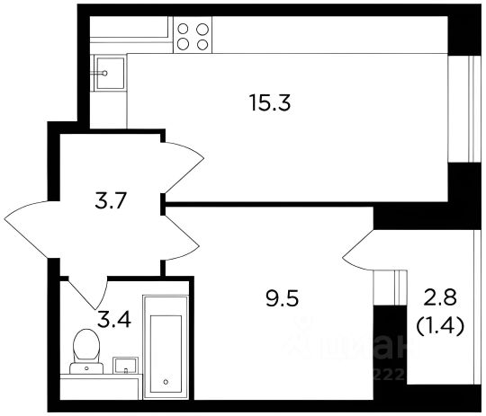1-комн.кв. · 43,2 м² · 9/14 этаж