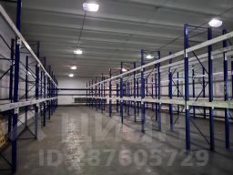 Есть двое ворот в ноль, место для погрузки-разгрузки фур. Установлены металлические стеллажи.