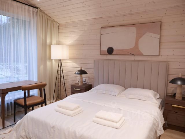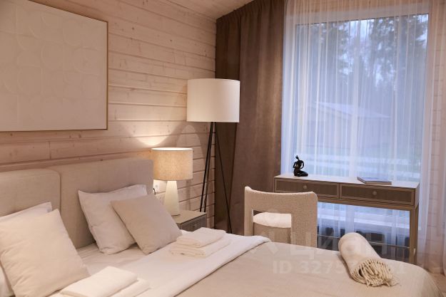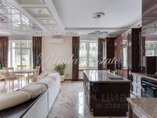 Центральное пространство дома — это великолепная двухсветная гостиная площадью 120 кв. м с потолками высотой 4,2 метра, панорамным остеклением и действующим камином, откуда открывается живописный вид на водохранилище. Кухня-столовая площадью 80 кв. м образует единое гармоничное пространство с гостиной. Из обеих зон есть выход на просторную террасу, опоясывающую дом по периметру.