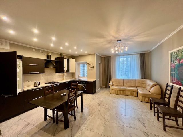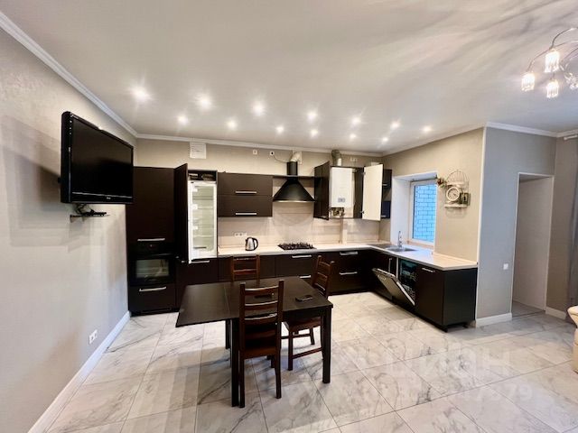 На первом этаже большая комната 39 м2 совмещенная с кухней 18 м2, холл 15 м2,с лестницей на 2-ой и цокольный этажи, гостевая комната 20 м2, с/у 12 м2, с турецкой баней и джакузи, пол первого этажа керамогранит с подогревом. Высота потолков 3 м.